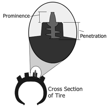 Do not continue to tighten studs once installed. Over-rotation may cause lacerations in the rubber. If damage occurs from over tightening, the stud may not be positioned correctly. Incorrect positioning may result in stud falling out during use.