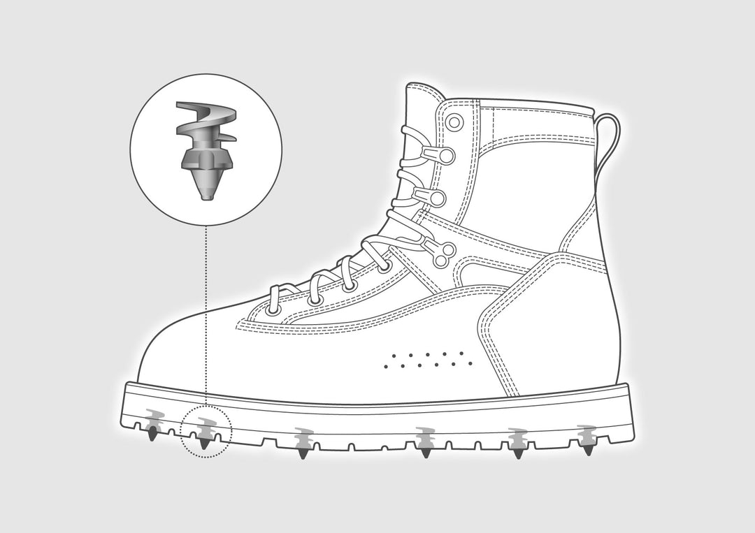 Unique wide-auger design keeps studs securely in place, eliminating the risk of them working their way in or out of your soles.